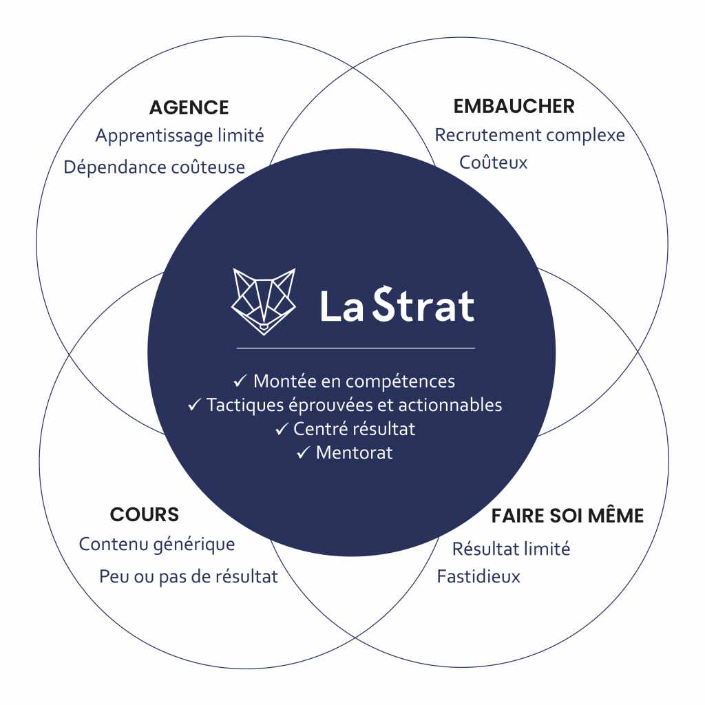 Récemment, j’ai travaillé en tant que stagiaire avec l’équipe de La Strat pour rafraîchir les visuels sur leur site web. La Strat est une entreprise unique, à mi-chemin entre une agence web et un organisme de formation. Leur mission est de fournir un accompagnement personnalisé en marketing digital pour aider leurs clients à accélérer leur croissance.