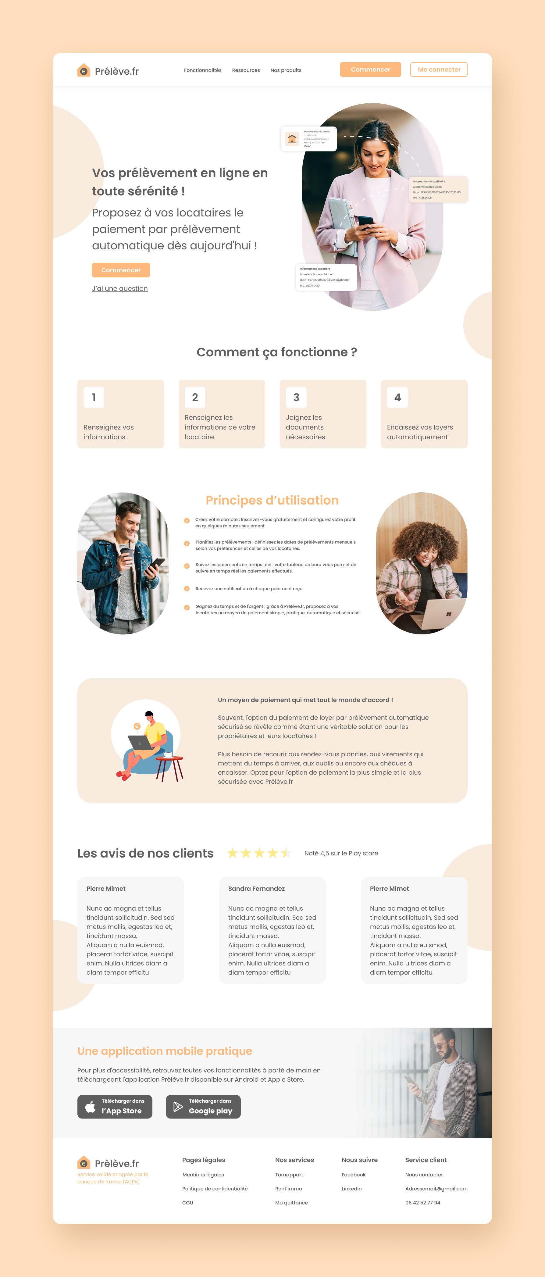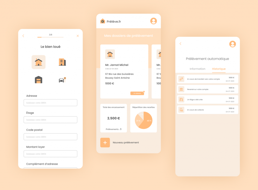 J’ai eu l’opportunité de concevoir des maquettes pour Prélève.fr, une application conçue pour simplifier les transactions entre propriétaires et locataires. Grâce à une inscription gratuite et une configuration rapide, les utilisateurs peuvent planifier et suivre les paiements en temps réel via un tableau de bord intuitif. Prélève.fr permet aux propriétaires d’économiser du temps et de l’argent tout en offrant une expérience fluide à leurs locataires. Ce projet illustre mon expertise en conception d’applications centrées sur l’expérience utilisateur et la simplification des processus financiers.